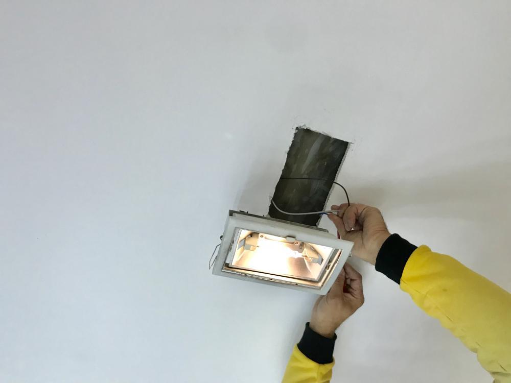 Cambio de tubos fluorescentes e foco halogenuro en zapatería Mary Paz